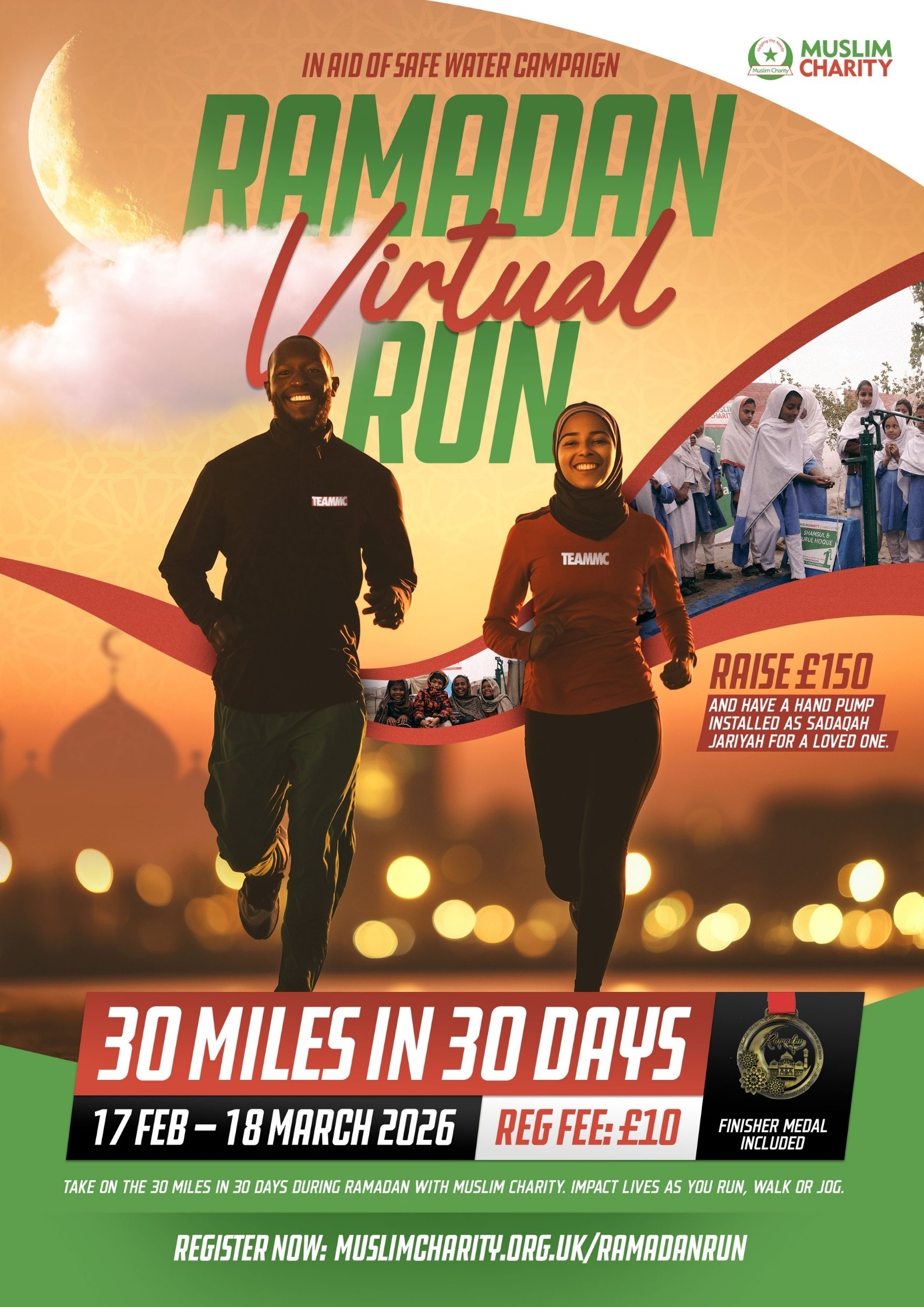 By taking part in the Ramadan Virtual Run, you're turning your miles into meaningful change. Once you reach the £150 fundraising target, it will be transformed into a water hand pump, donated in the name of your loved one. This becomes a beautiful form of Sadaqah Jariyah, a continuous charity that benefits communities long after Ramadan.